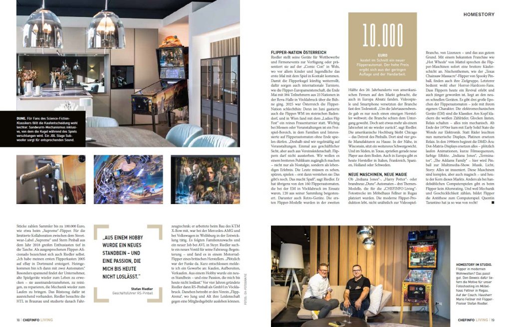 In der „CHEFINFO – Das Magazin der Führungskräfte“-Sonderausgabe Living Herbst 2025 ist ein schöner Artikel über Flipper im Wohnbereich erschienen: Freispiel im Wohnzimmer. Die Inszenesetzung und Home-Staging-Gestaltung war dabei im Möbelhaus Fellner in Regau durch Elke Holzmann-Riedler.