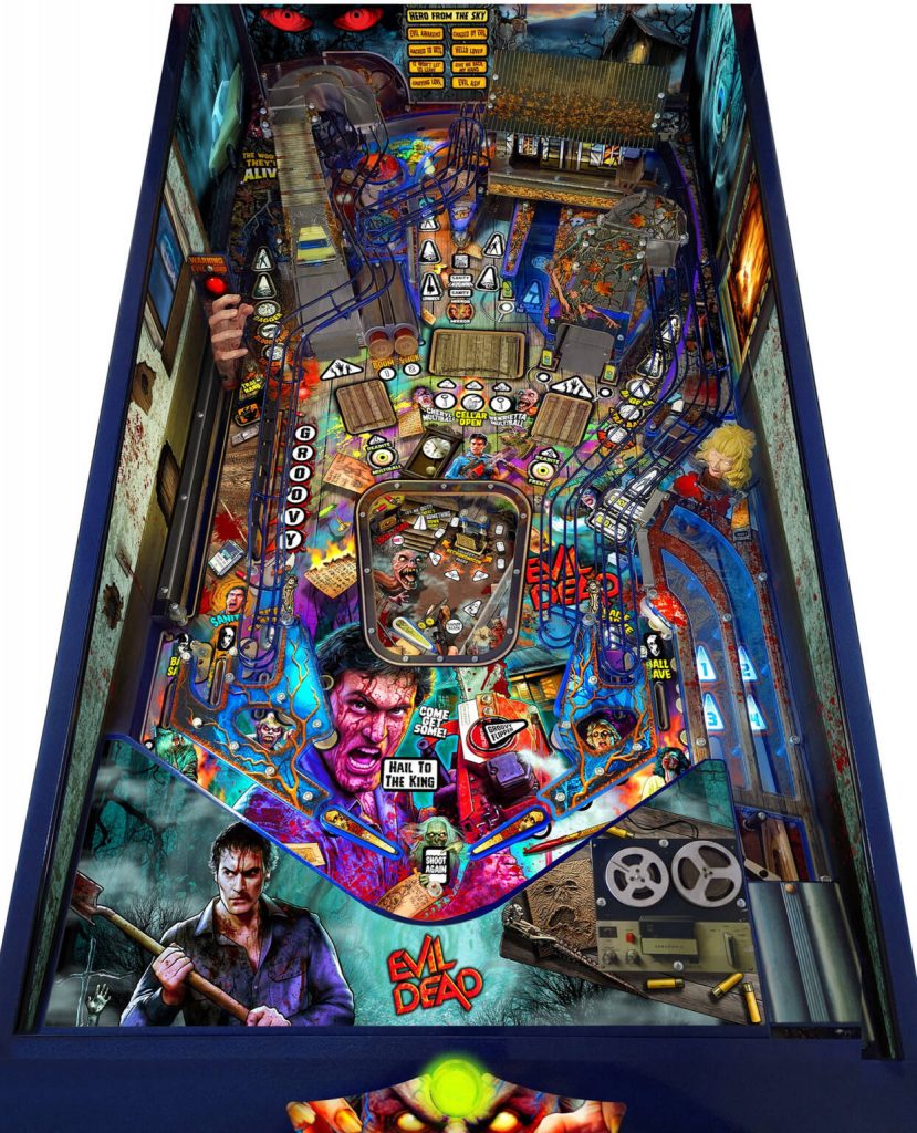 „Evil Dead Pinball ist unser bisher ehrgeizigstes Spiel mit der bisher größten Anzahl von Mechs in einem Spooky-Automaten. Und das Gerät enthält auch Original-Clips, Sprache und Sfx aus beiden Filmen. Evil Dead Pinball ist das vierte Spiel des Designer-Duos „Spooky Luke“ und Corwin „Bug“ Emery. Viele andere Mitglieder der Spooky Crew sind für diese Version zurückgekehrt, darunter Ben Heck für den Code, Matt Montgomery für die Musik und Back Alley Creations für die Skulpturen. Dies ist auch das erste in einer Reihe von vielen Spooky Pinballs mit einem kompletten Artwork von Christopher Franchi„, erklärt die Firma aus Benton/Wisconsin.