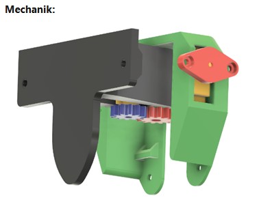Das zusätzliche Gehäuse wird einfach an den vorhandenen Schrauben der originalen Halterung befestigt. Im Inneren sorgt eine eigene Steuerplatine mit drei Tastern für die Ansteuerung des Motors und die Feinabstimmung der Bewegung.