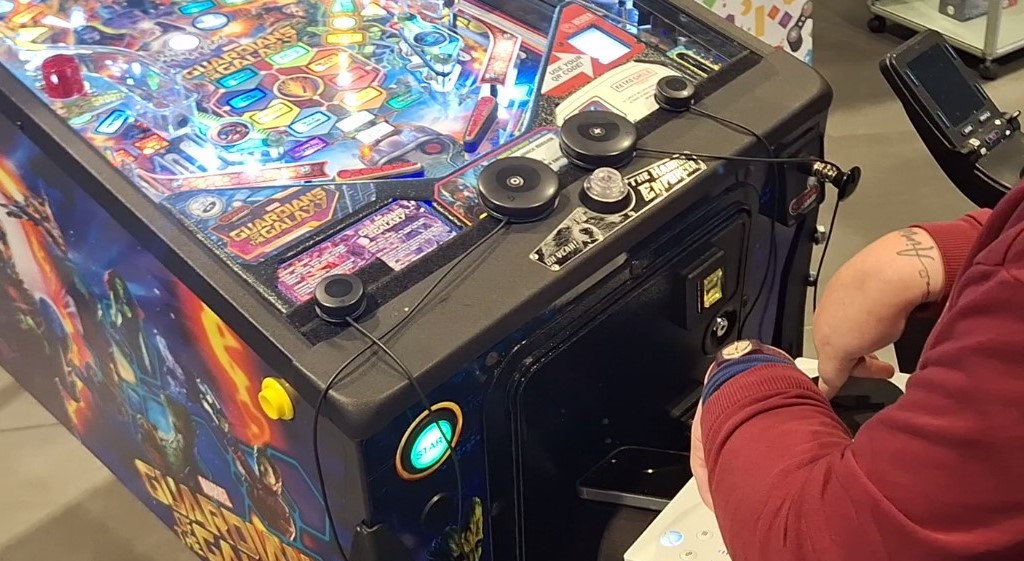 „Der Xbox Adaptive Controller wird drahtlos über Bluetooth verbunden, die Logitech-Tasten werden direkt an den von uns entwickelten Münzfachadapter angeschlossen“, erklärt Flippermarkr-Nutzer Ashram56 vom Entwicklerteam. „Sie können diese Tasten auch an den XAC anschließen, sodass Sie selbst mit den Tasten fast vollständig kabellos arbeiten können. Das System unterstützt auch Multiplayer, da mehrere Bluetooth-Controller gleichzeitig verbunden werden können. So können die Spieler sich an den Flipperautomaten abwechseln, ohne dass sie den Stecker ziehen oder einstecken müssen.“